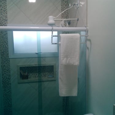 No seu banheiro privativo: